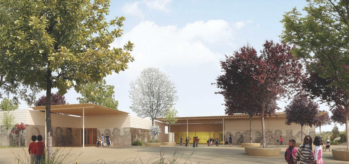 Un bâtiment bioclimatique et écologique pour le confort des enfants : construction en ossature bois, avec isolation en ouate de cellulose et tissus recyclés, éclairage naturel complété par des lanterneaux d’éclairage zénithal, confort acoustique au-delà des standards habituels.