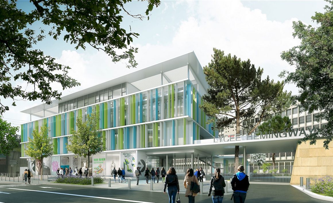 Construire un nouveau bâtiment dans l’enceinte du lycée Hemingway peut conduire à enfermer totalement les lycéens dans un environnement dur et minéral, surplombé par la grande barre des années 50.